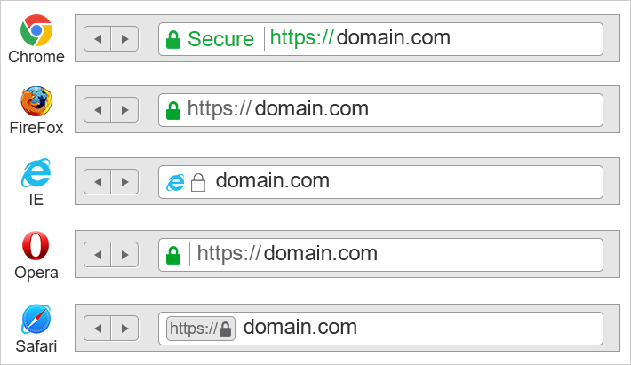 | 地址欄展示形態(tài) | 安全鎖 | 安全鎖+證書中顯示企業(yè)信息 | 安全鎖+證書上直觀顯示企業(yè)名稱 |